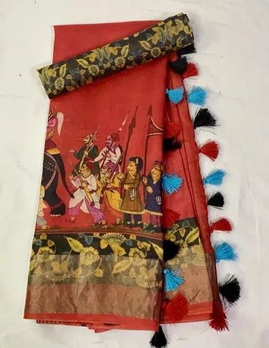 "Elegant Kalamkari Digital Printed Linen Saree with Blouse – Stylish & Timeless"