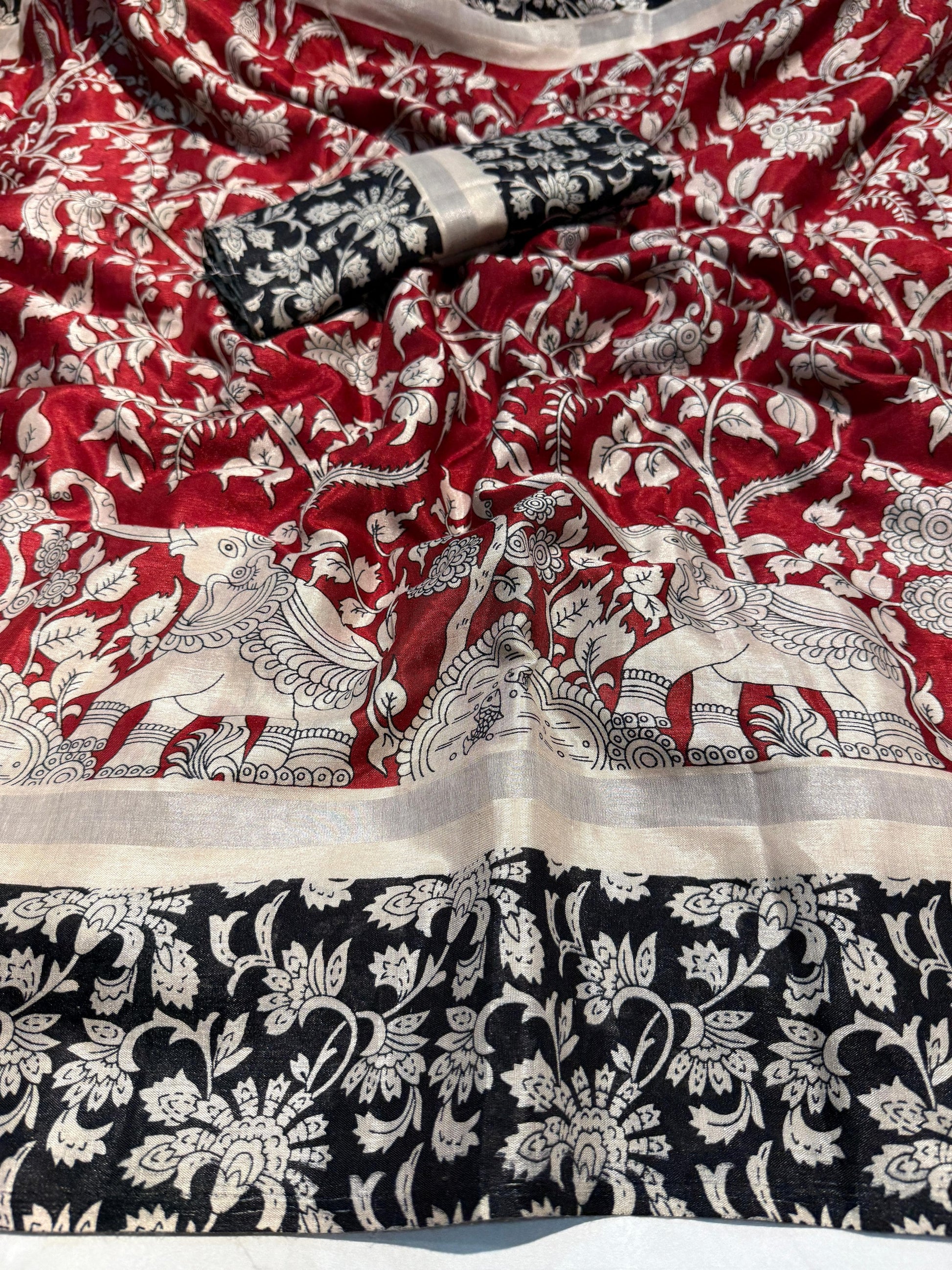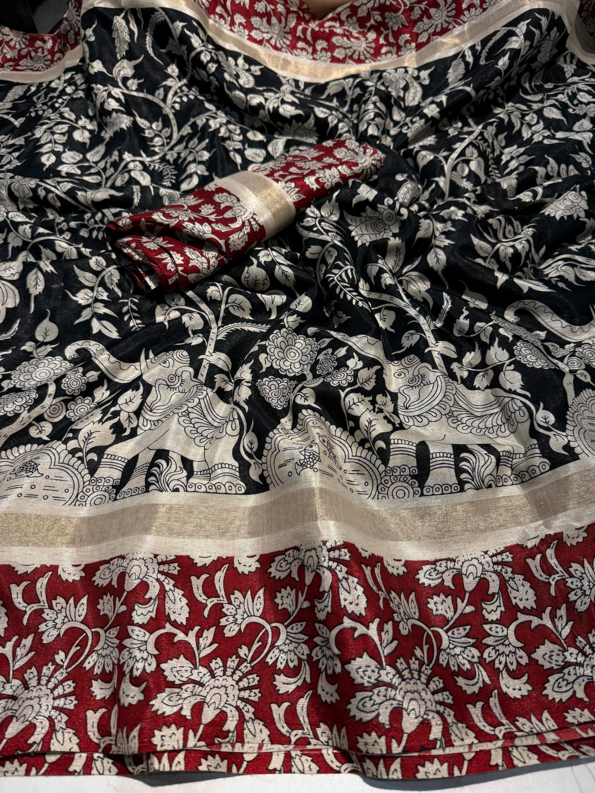 The saree and blouse are made from high-quality mul cotton fabric, offering comfort and elegance. -